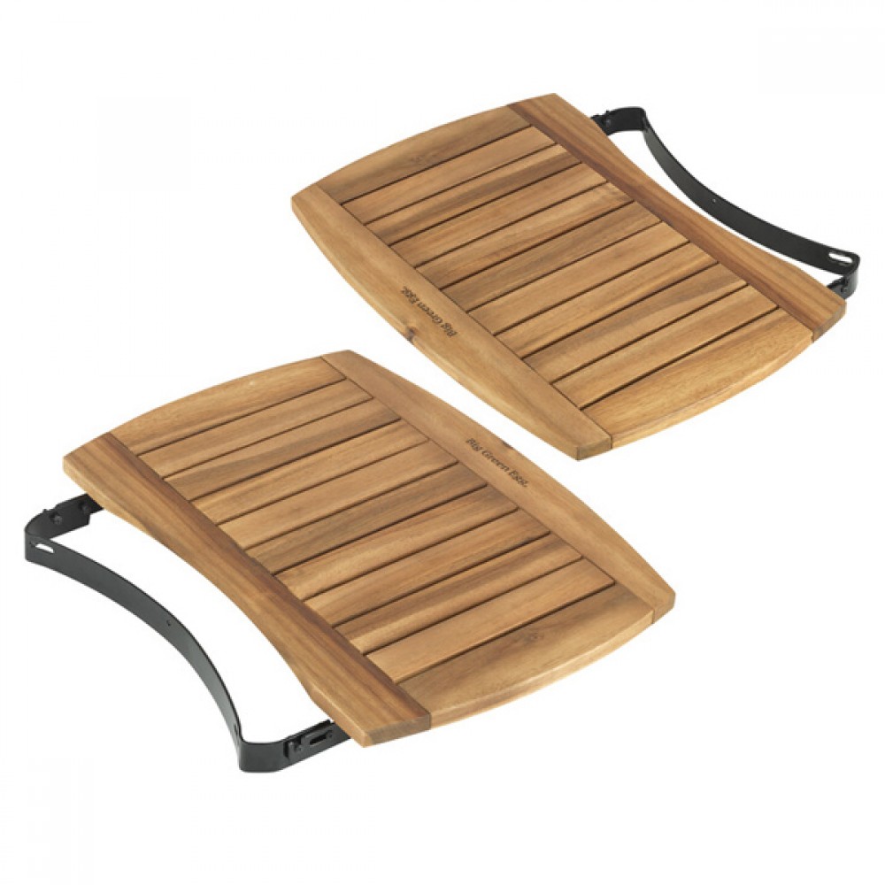 Бічні столики з натуральної деревини роблять роботу на вашому Big Green Egg ще простіше і приємніше. На них ви зможете розмістити все необхідне - продукти, обробні дошки, тарілки і багато іншого. Крім того, в комплект входять спеціальні гачки, на яких зручно розміщуються щипці, лопатки, щітки та інші корисні інструменти. Таким чином ви отримуєте можливість тримати все необхідне для роботи на вашому Big Green Egg під рукою, не використовуючи при цьому ніяких додаткових столів, шаф або стелажів. Зручна конструкція дозволяє легко скласти столики і вони практично не займуть додаткового простору при зберіганні.