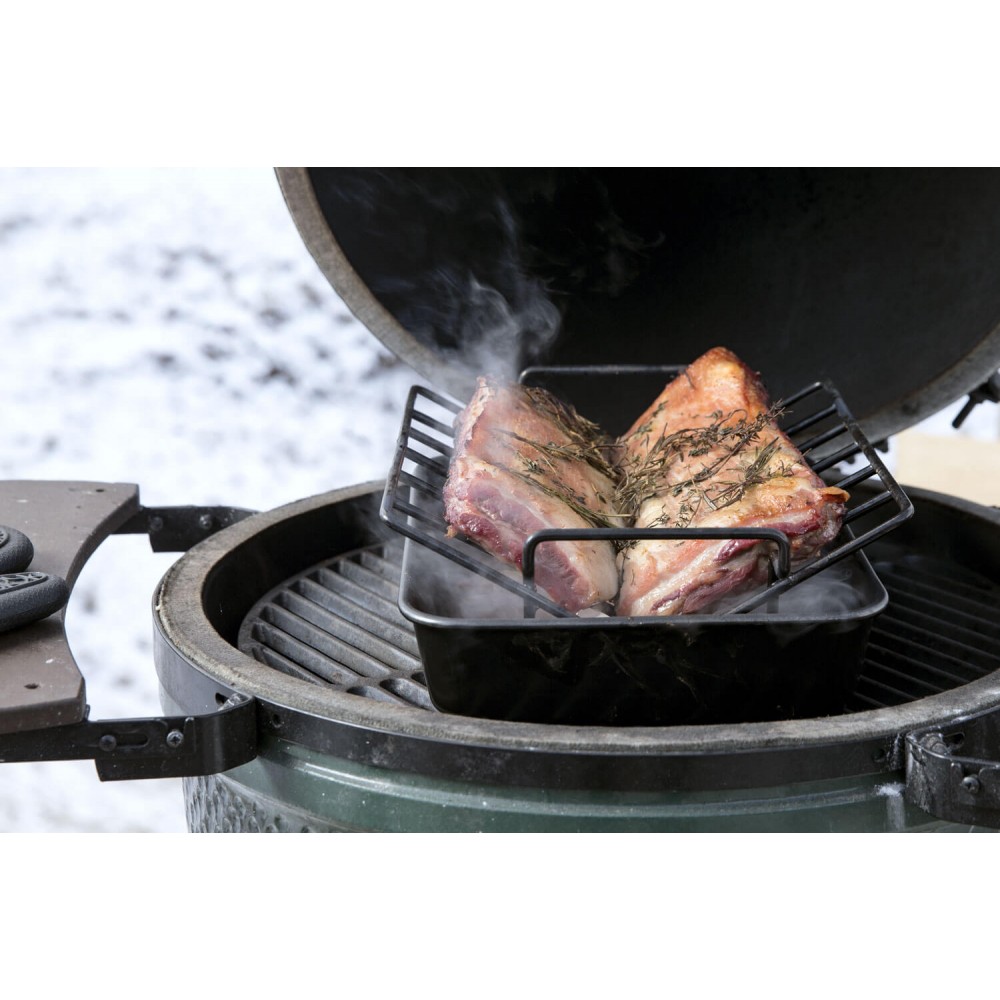 в ній великі шматки м'яса або птиці на повільному вогні. У перевернутому вигляді вона якнайкраще підійде для свинячих реберець. Постійна циркуляція повітря навколо підставки для реберець і м'яса дає чудові результати. Цей аксесуар повинен бути в арсеналі кожного цінителя страв з м'яса на грилі.