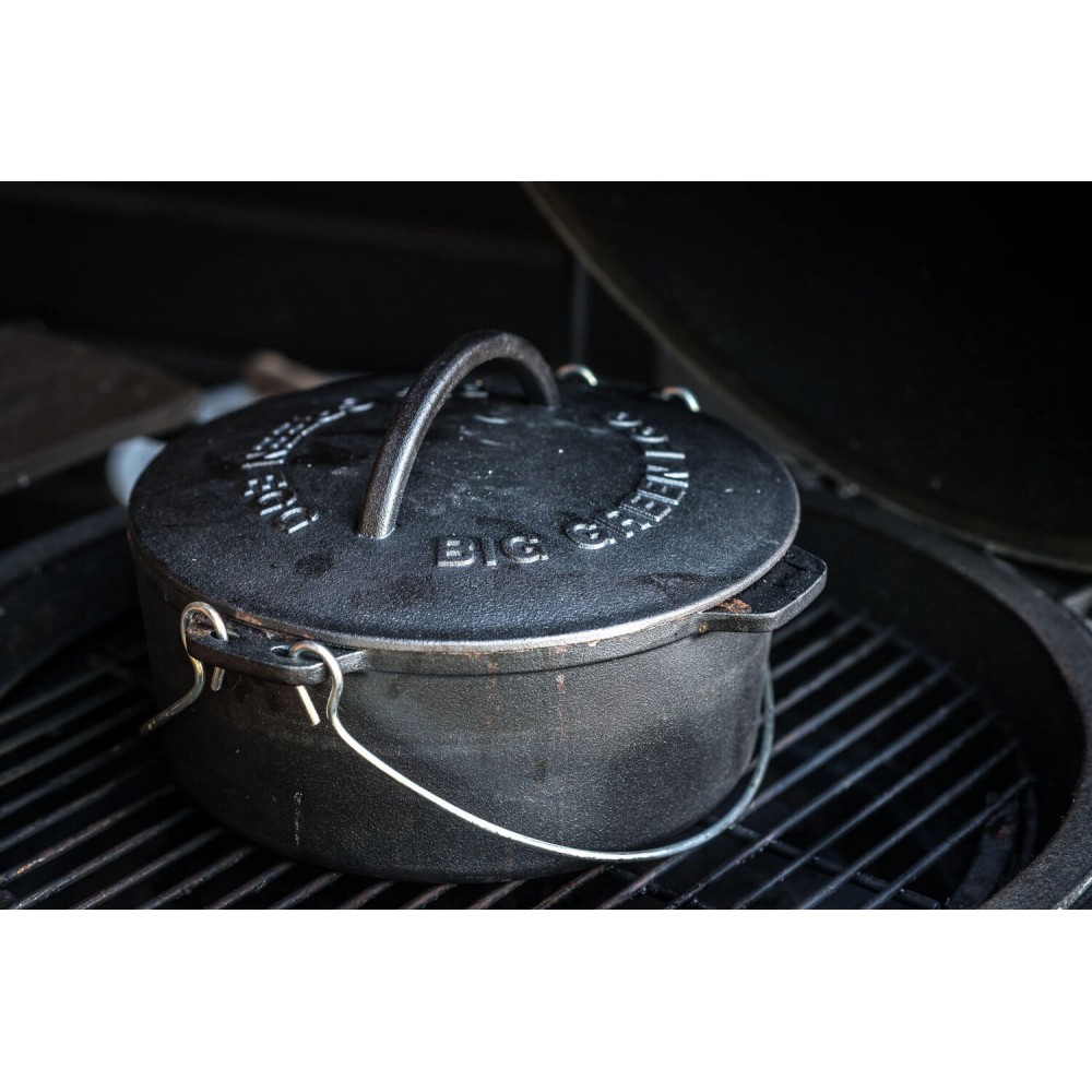 Цей універсальний чавунний казанок прослужить Вам на всіх фронтах. Казан Big Green Egg ідеально готує тушковані блюда, овочі для пюре, супи і жарке. Чавун розподіляє тепло по всьому казанка, а важка кришка утримує вологу всередині. Ви також можете використовувати його без кришки: тоді всі інгредієнти придбають характерний смак страви, приготованого в Big Green Egg. В обох випадках