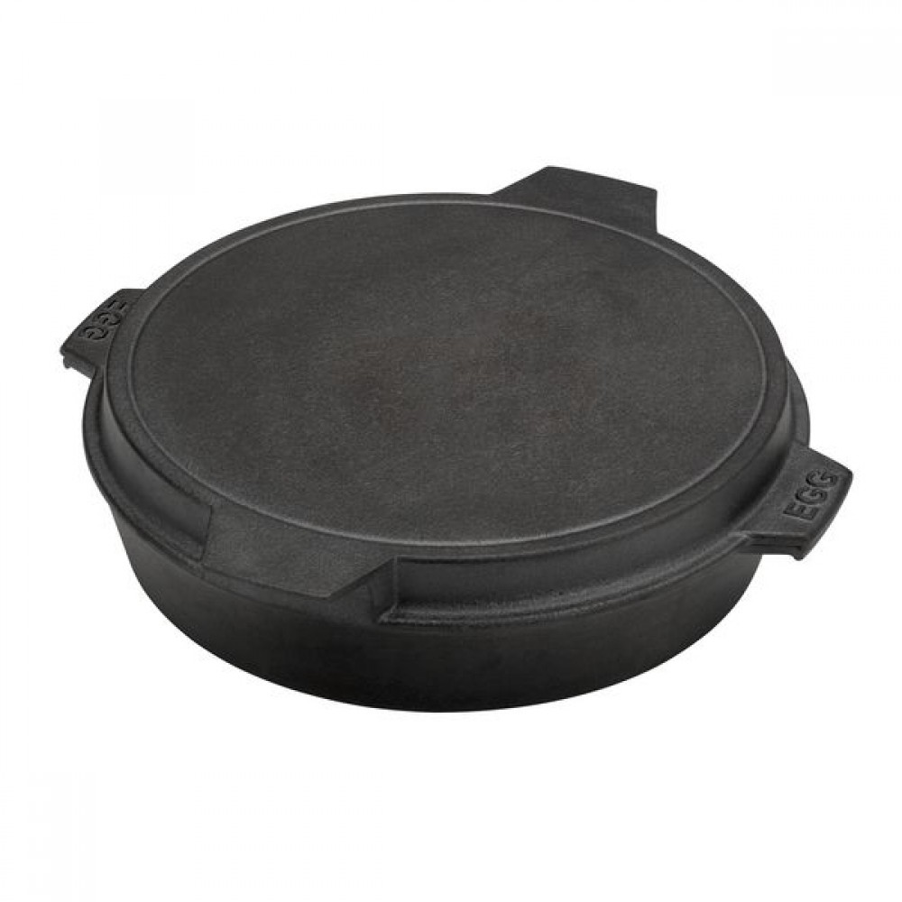 Сковорода виготовлена з литого чавуну і здатна забезпечити кухареві професійне приготування будь-яких страв. Має дві ручки для розміщення та вилучення її з гриля. Це ідеальний аксесуар для обсмажування, випікання або смаження. У поєднанні з круглою плитою Big Green Egg 120137 можна отримати жаровню і готувати нові страви на своєму грилі. Розміри: 25 х 3 см.