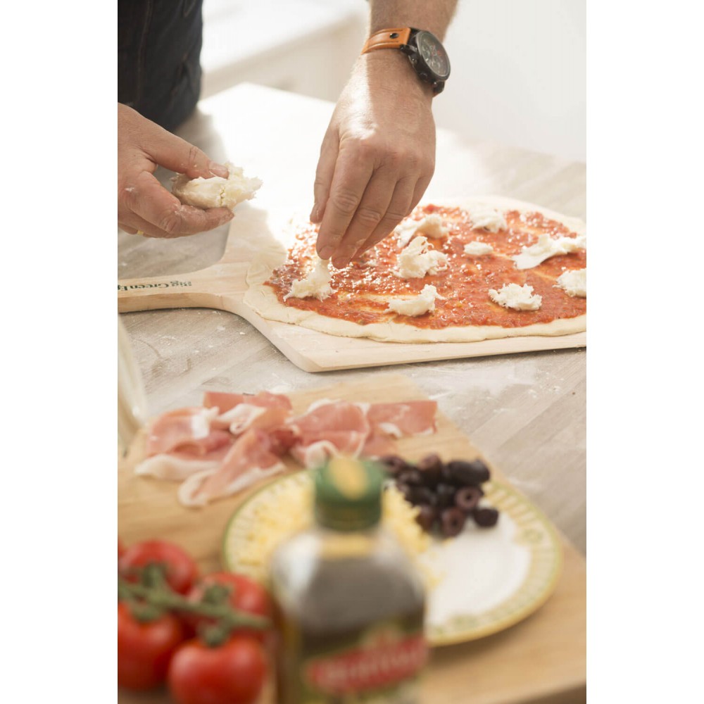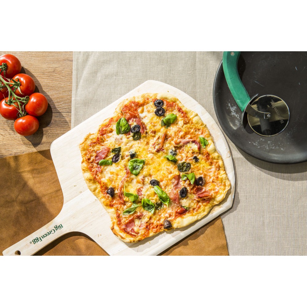 Піца, приготована в Big Green Egg, - це справжній шедевр італійської кухні. Особливо якщо використовувати для її приготування ряд інструментів, яким позаздрить будь-який професійний пиццайоло. Щоб отримати ідеальну основу для піци, розкачайте тісто власного приготування на килимку для розкочування тіста, а для досягнення найкращого результату - включаючи хрустку скоринку - випікайте його на камені для випічки за допомогою дерев'яної лопатки для піци.
