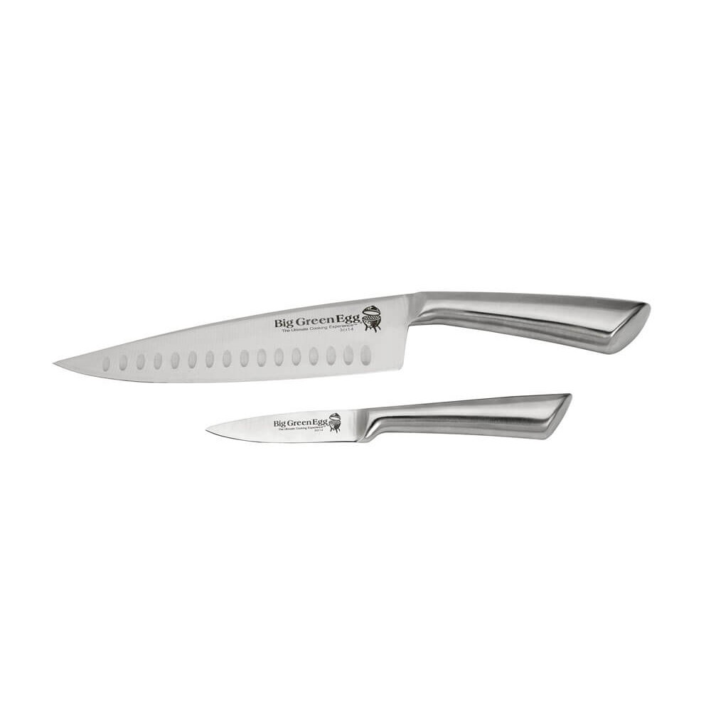 Набір ножів загострить на себе увагу будь-якого шанувальника EGG. Інвестиція, яка миттєво окупиться. Ергономічний кухарський ніж з лезом 20 см і ніж для чищення овочів з лезом 9 см впораються і з грубою, і з тонкою роботою. Надійне захоплення і оптимальний контроль.
