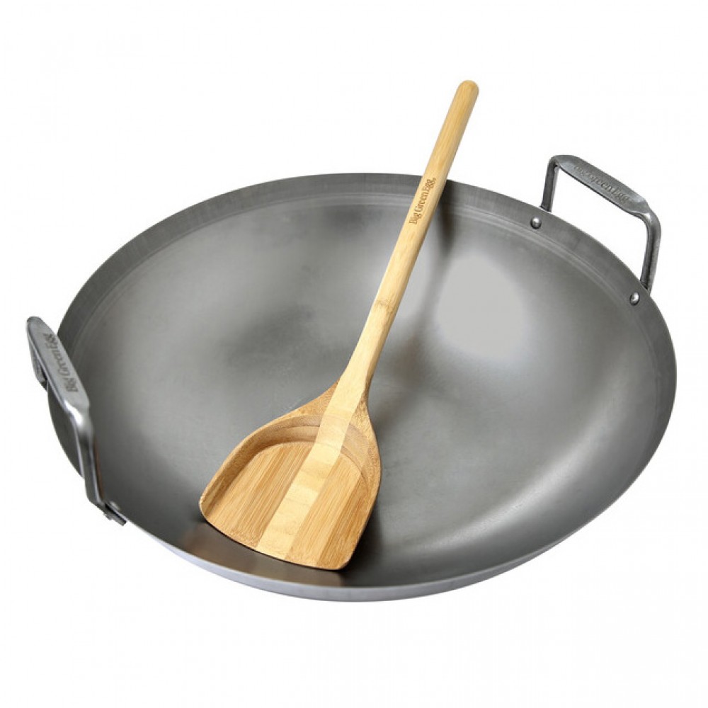 Гриль Big Green Egg абсолютно універсальний! Те саме можна сказати про приготування страв на сковороді вок. З цієї сковородою та бамбукової лопаткою вам по плечу будь-яка кухня світу. Завдяки плоскому дну сковорода вок стійко стоїть на будь-який нагрівальної поверхні. Її легко використовувати в поєднанні з багаторівневими решітками EGGspander. Чи готові робити вок?_x000D_